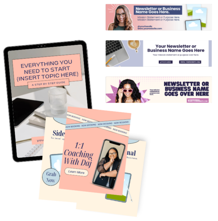 The Canva Template Pack for Business Beginners gives you essential, customizable templates to help you launch and grow your business faster. This bundle includes social media templates, lead magnet templates, digital product mockups and email header templates.